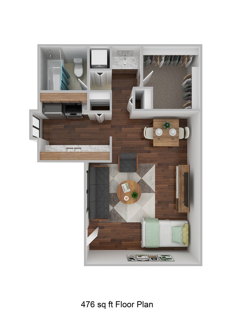 Our studio, 1-, 2- and 3-bedroom floor plans are creatively designed with attractive amenities to enhance your lifestyle. Careful attention has been placed in the places you gather and use most, offering uncompromising distinction in gracious apartment living. Our fully equipped kitchens with dishwashers, pantries, breakfast bars, and garden bay windows will surely delight you. Additional amenities include built-in bookshelves and desks, dressing areas, spacious walk-in closets, ceiling fans, oversized closets, and private balconies. These are just a few of the standard features you will find. These custom-quality residences are sure to please and inspire!
